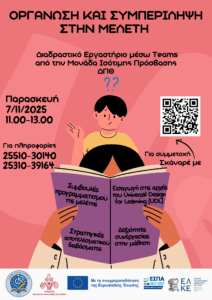 Αφίσα διαδραστικού εργαστηρίου «Οργάνωση και συμπερίληψη στην μελέτη»