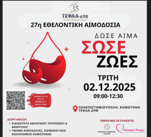 25.11.2025 ΑΝΑΚΟΙΝΩΣΗ ΓΙΑ ΑΙΜΟΔΟΣΙΑ